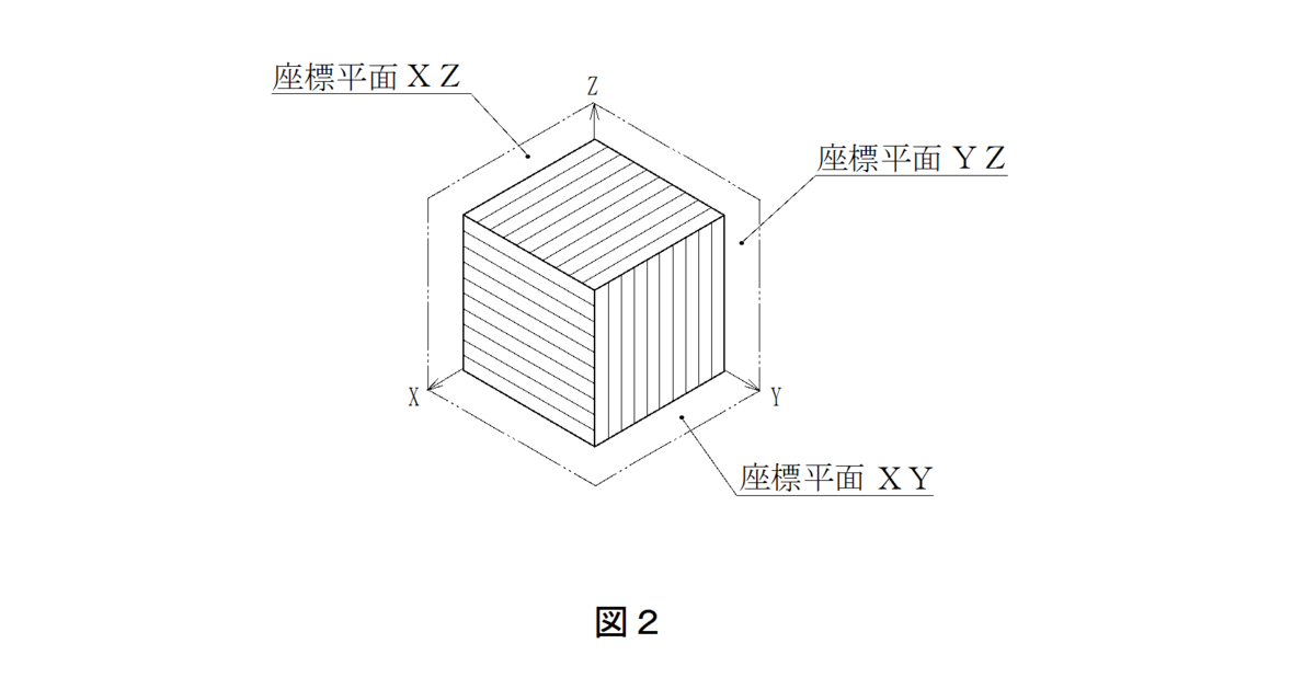 一つの座標面は、二つの座標軸で構成され、原点を含む。各座標面を、それぞれXY、